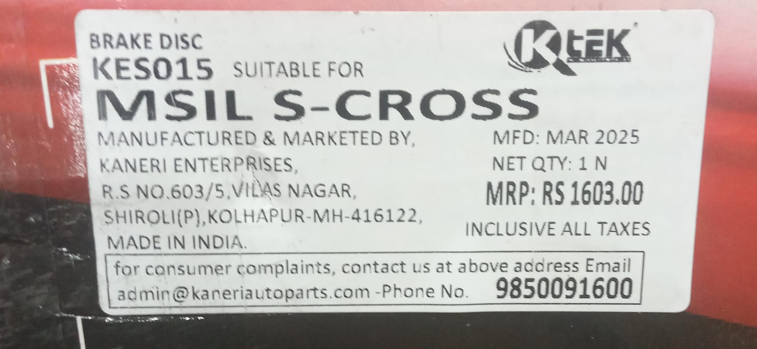 Be the first to review “(K TEK) BRAKE DISC ROTOR S- CROSS”