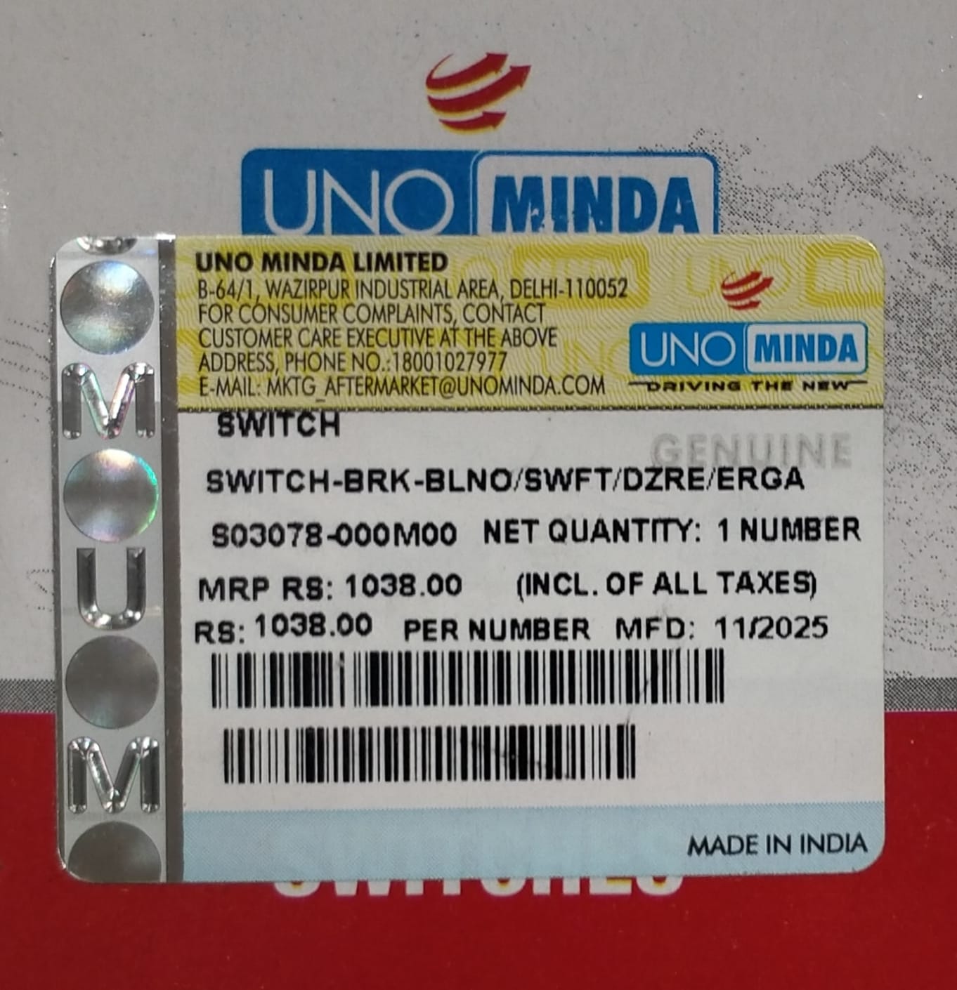 UNO MINDA BRAKE SWITCH BRAZA/SCROSS/IGNIS/CIAZ