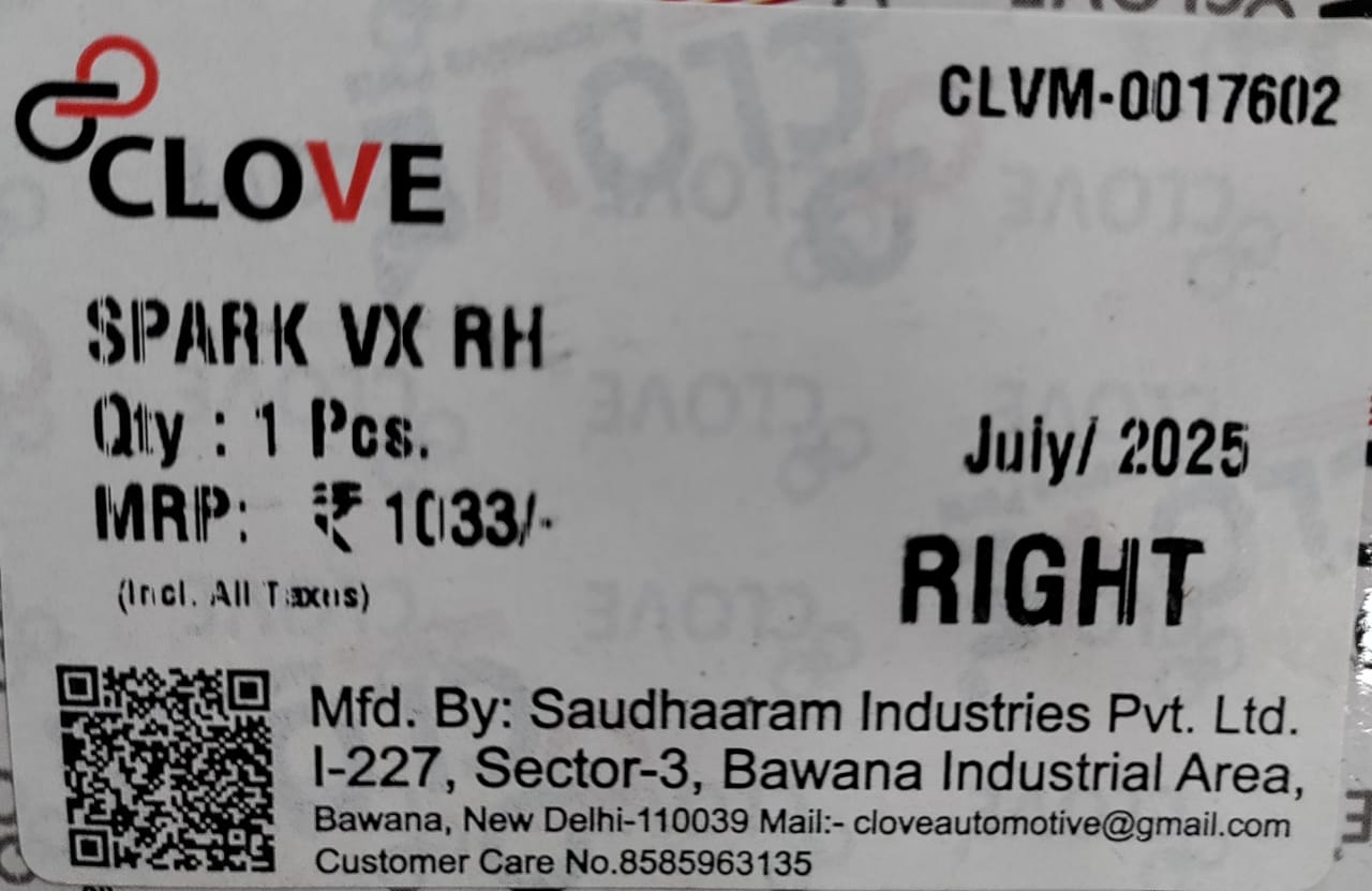 Be the first to review “(CLOVE) SPARK VX RH SIDE VIEW MIRROR” Cancel reply