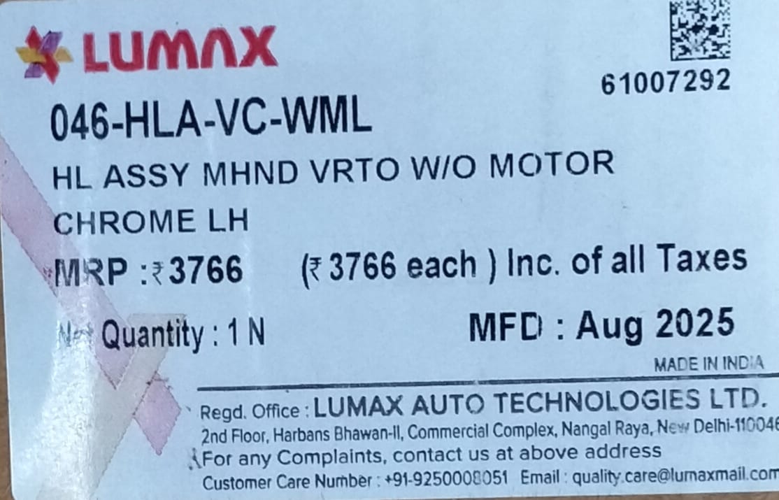 Be the first to review “LUMAX HEAD LIGHT MHND VERITO W/O MOTOR -LH” Cancel reply