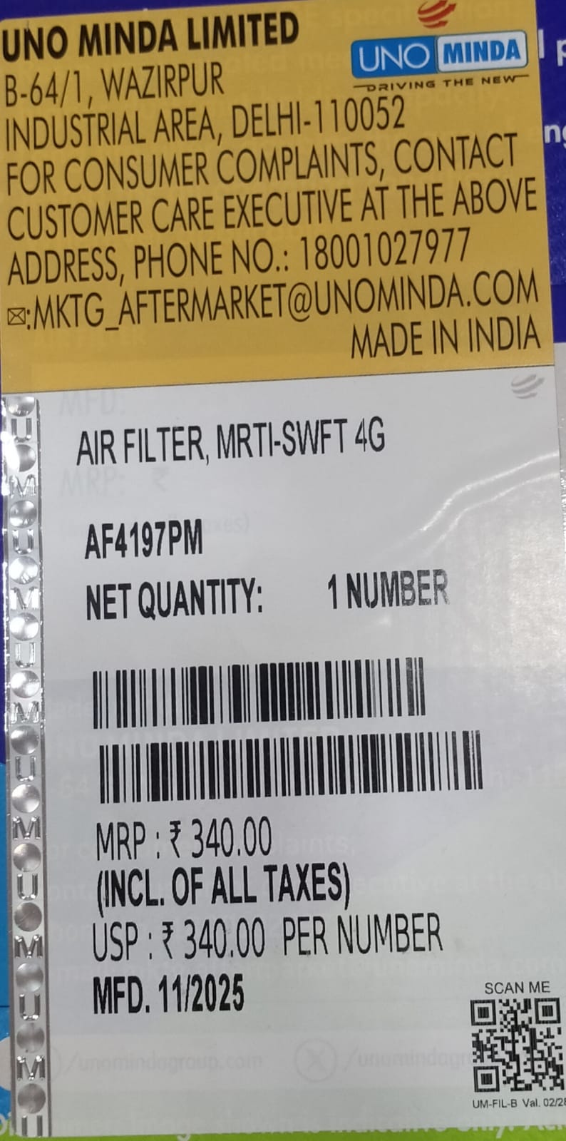 UNO MINDA AIR FILTER MARUTHI SWIFT 4G