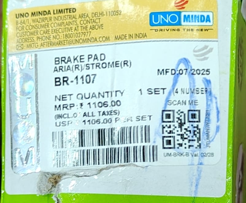 UNO MINDA BRAKE PAD ARIA/ STORME/ HEXA- REAR