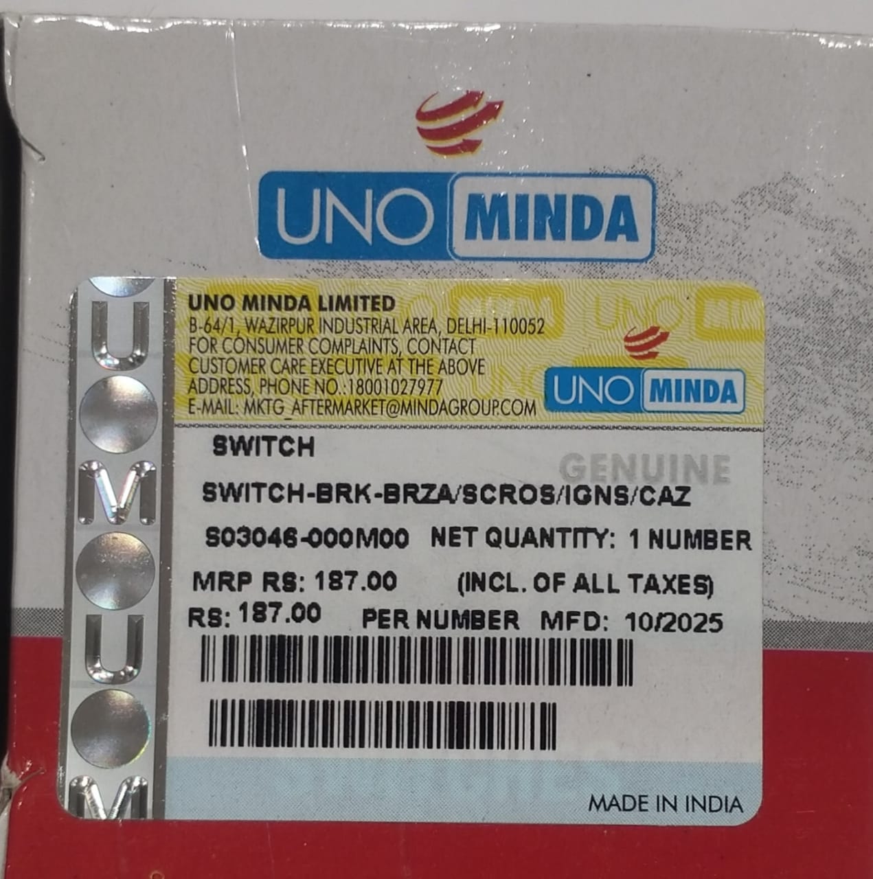 UNO MINDA BRAKE SWITCH BREZZA, CIAZ, S-CROSS, IGNIS, WAGON R 2ND& 3RD GEN, SWIFT 1ST& 2ND GEN, SWIFT DEZIRE 1ST& 2ND GEN, SUPER CARRY, STINGRAY, SX4, RITZ, ERTIGA (2012-2018)